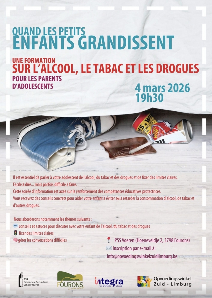 15h11 11 févr. 2026 Une information sur l'alcool, le tabac et les drogues Tweet Lien permanent Catégories : Drogue, Enfants, Fouron-le-Comte, Santé 0 commentaire